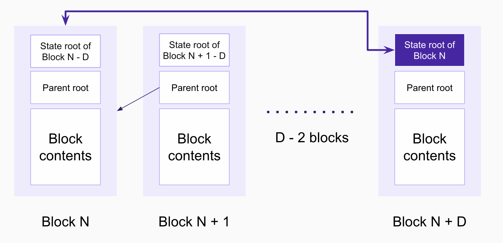 - In the likely event that the proposed block is finalized, the validator node has already done the work and can immediately update its merkle root pointer to the result.